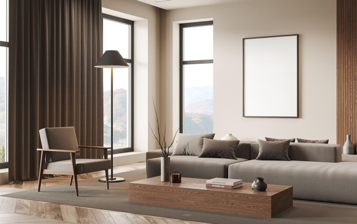مدرن: پرده ساده، رنگهای خنثی، خطوط مینیمال